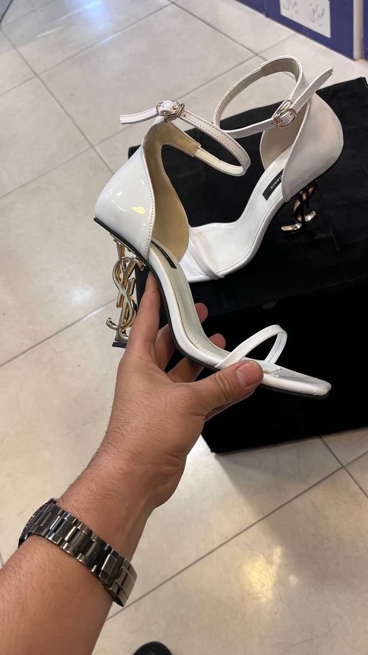 کفش مجلسی زنانه پاشنه YSL سفید